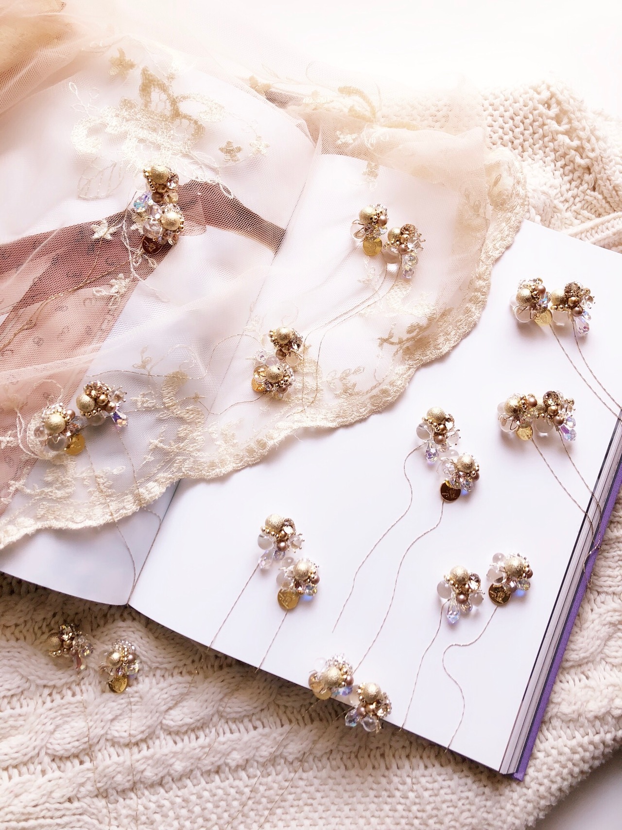 アクセントにSWAROVSKIのオーロラも組込み、