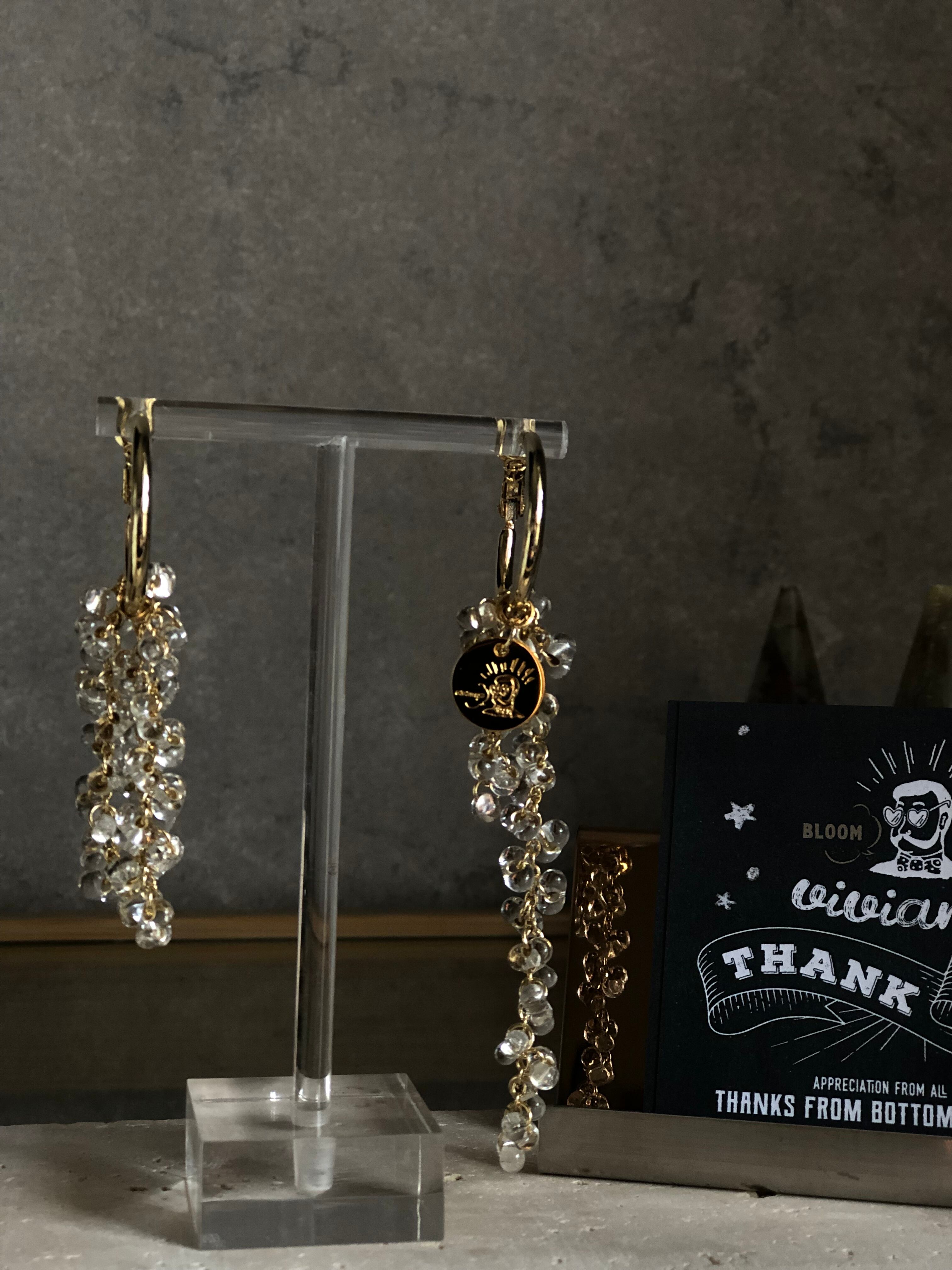 長さの違うチェーン⛓に一粒一粒ガラスビーズを施し、